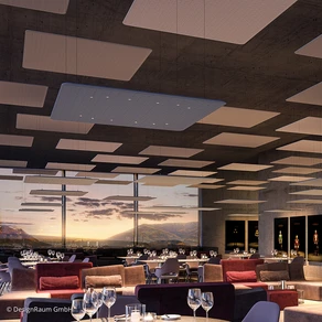 În foaiere, restaurante sau cafenele, lampele suspendate sunt adesea amplasate deasupra meselor sau tejghelelor. Lămpi suspendate radiază aici un confort nobil. Datorită conului de lumină direcționat în jos, oaspeții nu sunt orbiți atunci când intră în hol, iar în restaurant, lampele suspendate separă vizual mesele unele de altele.