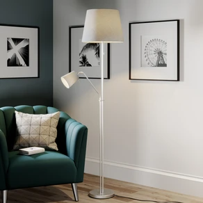 Lămpi de plafon se ridică drept în sus ca un lampadar clasic. Cu toate acestea, lumina nu cade în lateral și în jos, ci în sus, spre tavan. Cu o culoare deschisă, însă, lumina este reflectată și cade ușor în cameră. Dar așteptați un minut! Încă nu este suficient de confortabil pentru citit. Este adevărat. Proiectanții lămpii de plafon s-au gândit și la acest lucru și au instalat o sursă de lumină suplimentară: o lampă de citit pe un braț de citit flexibil. Mai mult confort nu este posibil!