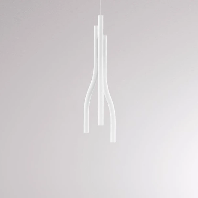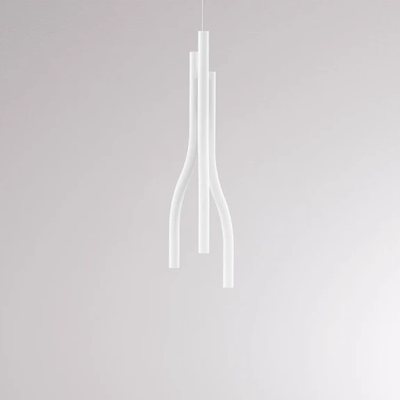 Lampă suspendată cu trei lămpi LED AlgaeOrganică, ca lianele din junglă, lampa suspendată cu LED Algae șerpuiește spre podea. Elementele, care sunt montate la înălțimi diferite, sunt fiecare ușor îndoite spre exterior în zona inferioară, ceea ce creează un design natural care seamănă cu o plantă. Fiecare dintre cele trei elemente este echipat cu LED-uri alb cald la capătul inferior, care luminează direct în jos, cu un unghi de 38°, pentru a ilumina zona de sub corp. Designerul Rainer Mutsch a primit deja mai multe premii de design renumite pentru Algae, cum ar fi German Design Award (câștigător în 2020). Limbajul special de design, în ciuda simplității și a valorii de recunoaștere, a jucat un rol decisiv în acest caz, printre altele.Alte premii:- Premiul Big See Productdesign Award 2020 Câștigător- Aparatul de iluminat al anului 2019 Revista Highlight