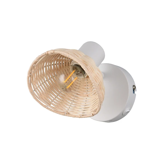 Aplică de perete Calvi, albă, ratan natural, Ø 13 cm, întrerupător