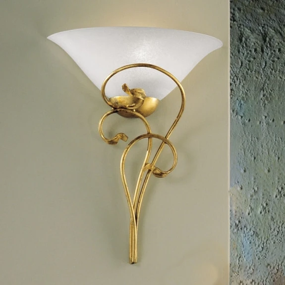 Aplică artistică CILENTA din aur antichizat cu sticlă albă ScavoAmpa de perete Cilenta, proiectată artistic, obține un efect impresionant datorită materialului de înaltă calitate și designului elaborat. Acest lucru face ca lămpile CILENTA să fie adevărate bijuterii chiar și atunci când nu sunt aprinse. Producția exclusivă în Germania și Italia asigură cea mai bună calitate, o manoperă excelentă și termene de livrare scurte.