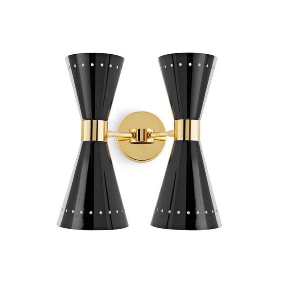 Aplică de perete Stilnovo Megafono: eleganță și versatilitate în design și funcție Aplica de perete Stilnovo Megafono combină designul atemporal cu versatilitatea funcțională. Fabricată din metal de înaltă calitate și în culorile elegante negru și auriu, această lampă se integrează perfect în diverse zone de locuit, cum ar fi camera de zi, sala de mese, holul și dormitorul. Culoarea alb cald a luminii, cu 2.700 Kelvin, creează o atmosferă plăcută care este atât liniștitoare, cât și inspiratoare. Cu o fidelitate a culorilor de 80 Ra, lampa Megafono asigură o redare autentică a culorilor, care îmbunătățește ambianța unei încăperi. Fabricat în Europa, corpul de iluminat reprezintă standardele de calitate și design, care sunt subliniate de renumitul designer Stilnovo. Această aplică de perete cu 4 becuri nu este doar un obiect de iluminat, ci și un element elegant care adaugă o notă specială oricărei încăperi.