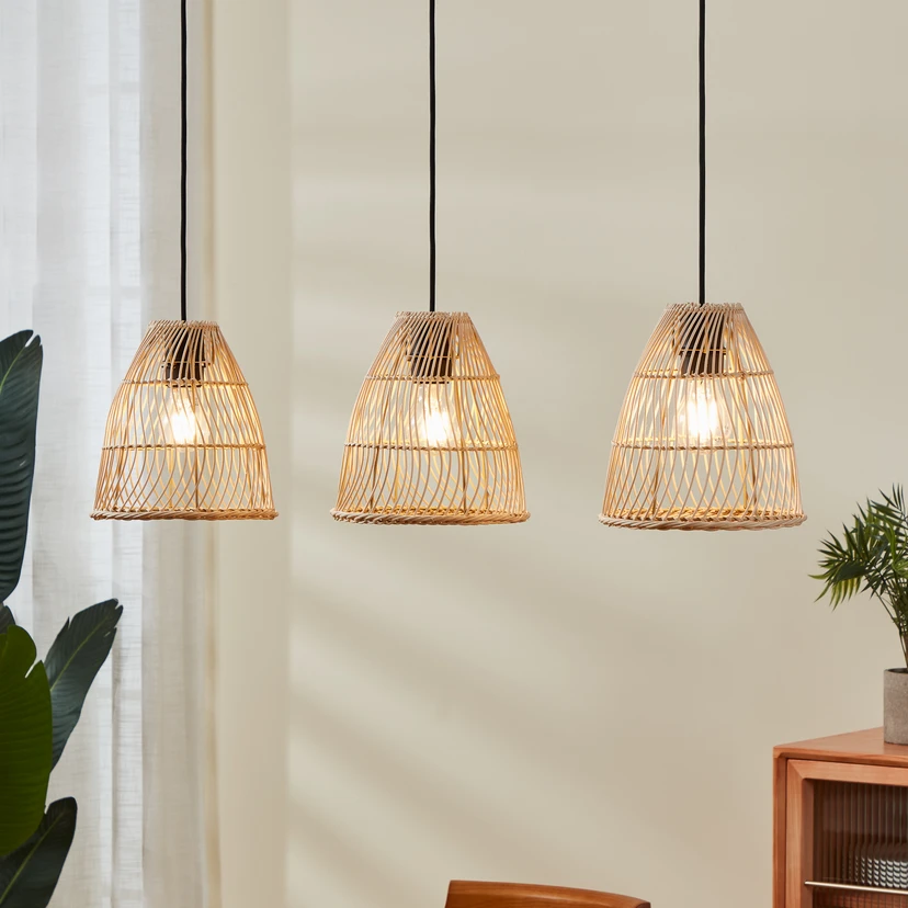 Ayesgarth lampă suspendată cu 3 abajururi ratan