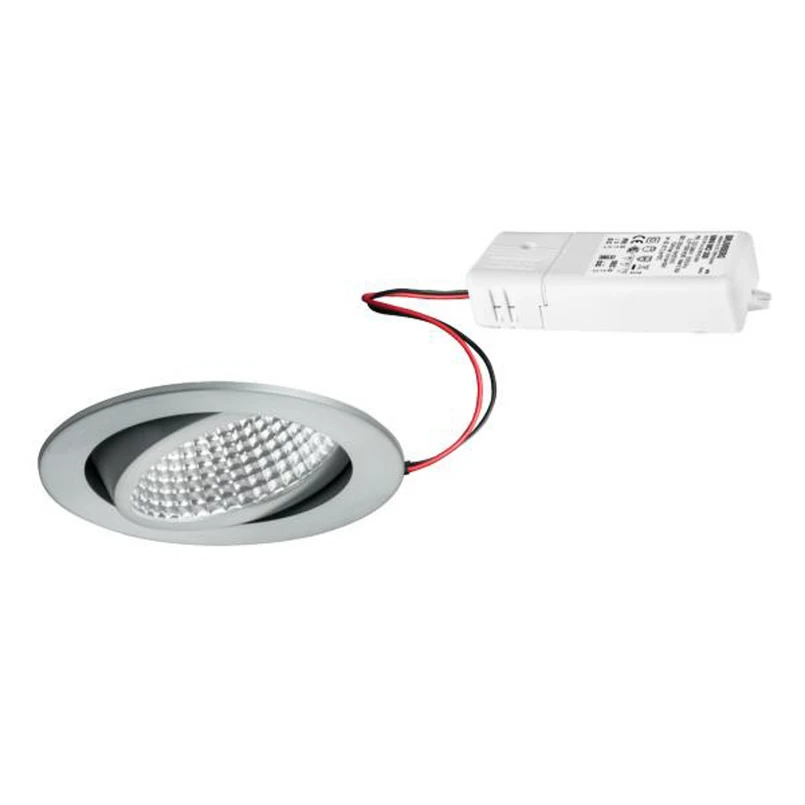 Spot de încastrare cu LED Kerby-R cu driver reglabil Spotul rotund de încastrare cu LED Kerby-R poate fi reglat cu un regulator extern cu întrerupător de fază. Instalarea pe tavan fără scule este posibilă cu ajutorul arcurilor de încastrare. Reflectorul este argintiu, cu o distribuție a luminii de adâncime mare, simetrică prin rotație. Distribuție optimă a luminii datorită unui capac din sticlă. - Temperatura ambiantă admisă (ta): -20 °C - 25 °C - Cu alimentator electronic, dimerizabil cu secțiune de fază