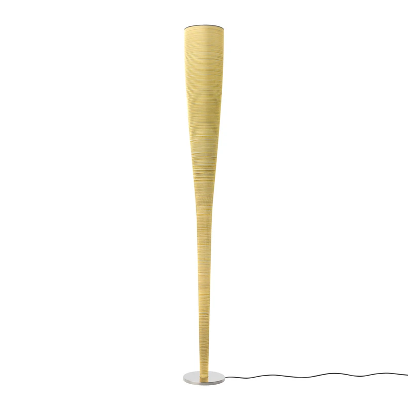 Lampă de podea reglabilă Mite din țesătură de sticlă și fibre Kevlar® Lampa de podea Mite este fabricată din țesătură de sticlă și fibre Kevlar®, un amestec inovator de materiale care conferă corpului de iluminat o structură portantă și îl face să atragă atenția în mod special în zona de locuit. Kevlar® este un material deosebit de puternic și robust, realizat din fibre sintetice, care este utilizat la fabricarea anvelopelor și a vestelor antiglonț. Forma lămpii de podea amintește de un potir, deoarece baza este foarte îngustă și se lărgește spre vârf. În partea de sus se află soclul pentru sursa de lumină, care luminează spre tavan și, în același timp, luminează interiorul lămpii de podea, ceea ce pune în evidență designul și forma deosebit de bine. Se poate utiliza fie o sursă de lumină cu halogen reglabil, fie o sursă de lumină cu LED reglabil. Mite poate fi pornită și oprită și reglată continuu cu ajutorul comutatorului integrat în cablul de alimentare. Lampa de podea Mite a marcat începutul colaborării dintre designerul Marc Sadler și renumitul producător de iluminat Foscarini în 2001. Luminarul inovator a fost distins cu Compasso d'Oro și este în prezent unul dintre obiectele de cult absolut ale companiei italiene. Chiar și în timp ce lucra în industria sportului, Marc Sadler s-a bucurat să experimenteze cu noi materiale și procese de producție. Acest lucru îi caracterizează și astăzi proiectele sale și a fost premiat de mai multe ori cu Compasso d'Oro.