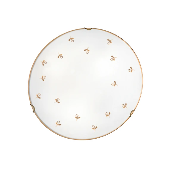 Aplică de perete Nonna combină estetica atemporală cu finisaje de înaltă calitate. Fabricată din sticlă și metal, aceasta impresionează prin combinația armonioasă dintre designul alb și cel auriu. Decorațiunile florale pictate manual cu măiestrie conferă lămpii un caracter special și o transformă într-un element de atracție în orice încăpere. Fie că este amplasată în sufragerie, în sala de mese sau în hol, această lampă se integrează perfect într-un ambient rustic sau rural și asigură o iluminare atmosferică.