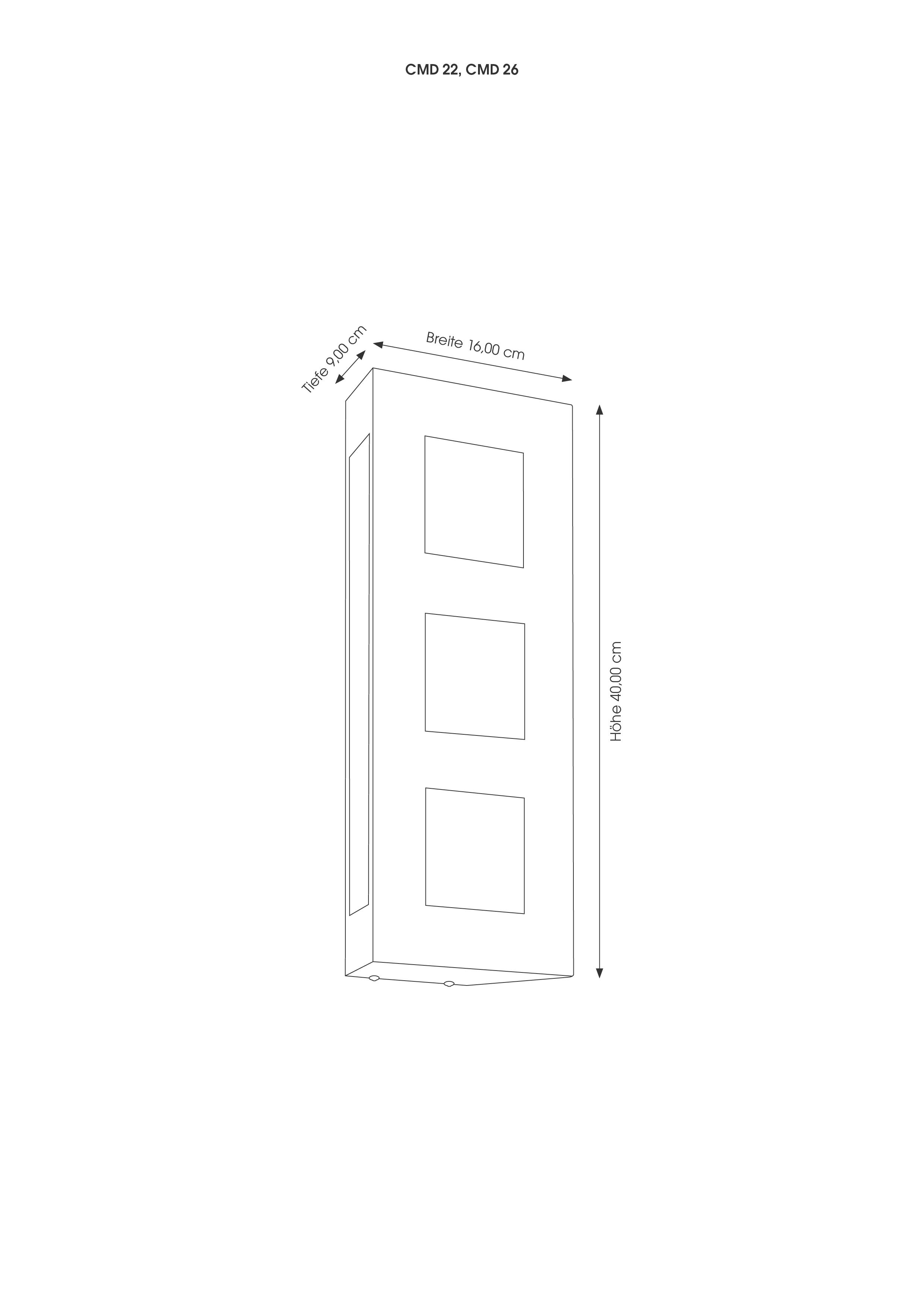 Designul purist al acestei aplica de exterior este completat vizual de fața divizată în trei părți. Lampa răspândește lumina în toate direcțiile prin panourile de sticlă și asigură, de asemenea, o iluminare deosebit de plăcută.