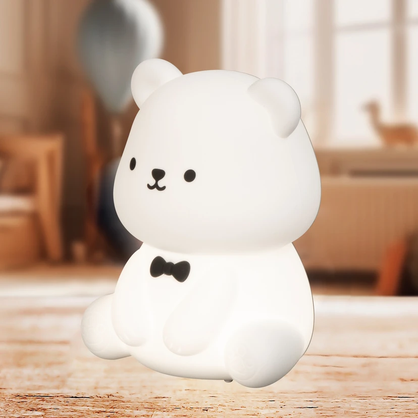 Lampa de masă cu baterie LED Karl încântă fiecare copil cu forma sa drăguță de ursuleț. Cu sursa de lumină LED integrată și funcția RGB, aceasta oferă o varietate impresionantă de culori de lumină – de la alb cald până la accente colorate și vii. Materialul siliconic de înaltă calitate asigură o senzație tactilă plăcută.