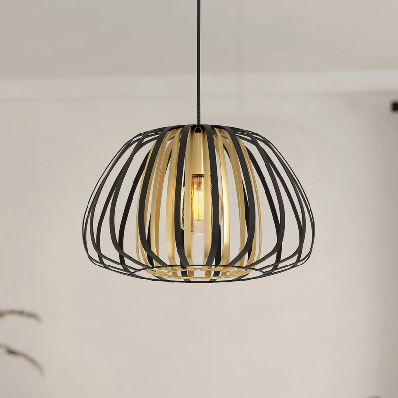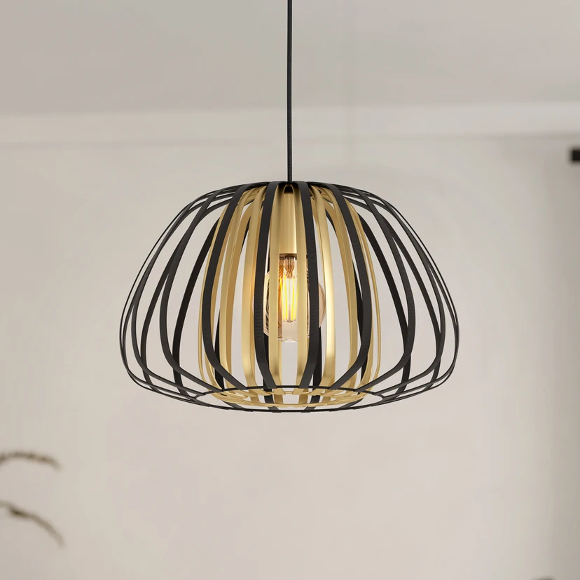 Lampă suspendată Encinitos, negru/alamă, Ø 37,5 cm