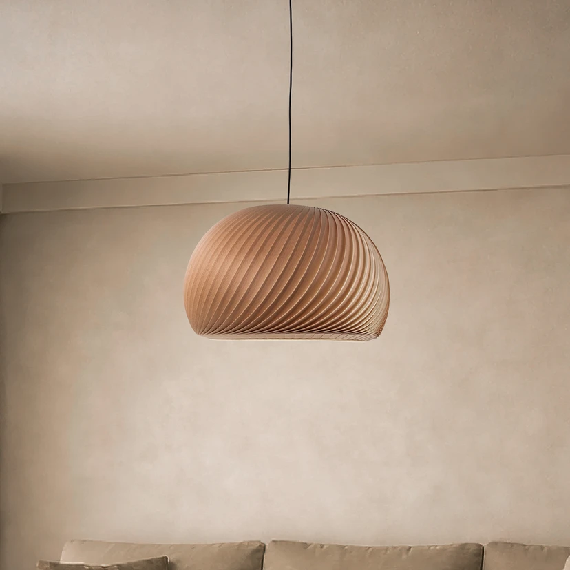 Lampă suspendată Janne cu abajur rotund din lemn de fag