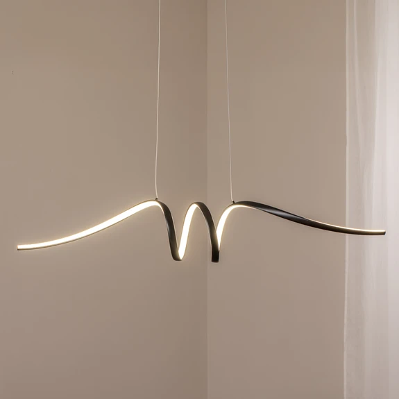 Lampa suspendată LED Loop combină designul modern cu iluminarea eficientă. Fabricat din metal și plastic de înaltă calitate, lumina se prezintă într-un aspect elegant negru-crom. Ea emite o lumină rece, alb neutru, care este difuzată în toate direcțiile prin LED-urile încorporate pe o parte în elementul luminos răsucit, în spatele capacelor opale albe. Combinația dintre stilul modern și lumina cu consum redus de energie face din această lumină o alegere excelentă pentru conceptele de locuințe contemporane.