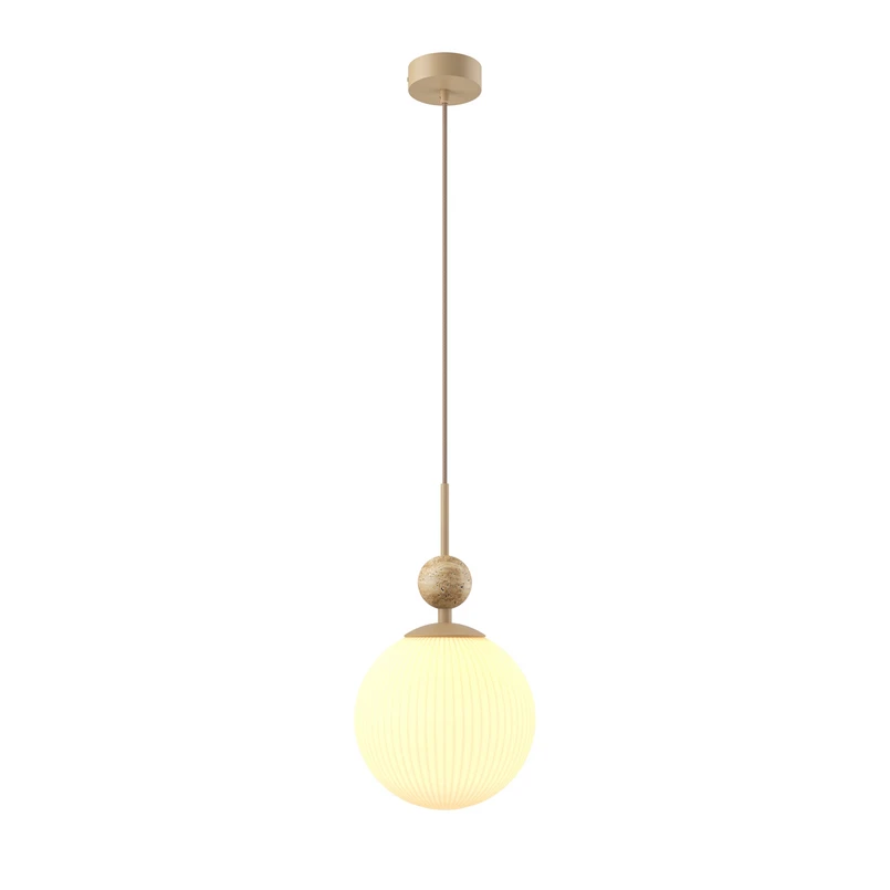 Lampă suspendată Maytoni Tavo, bej, travertin/sticlă, Ø 20 cm