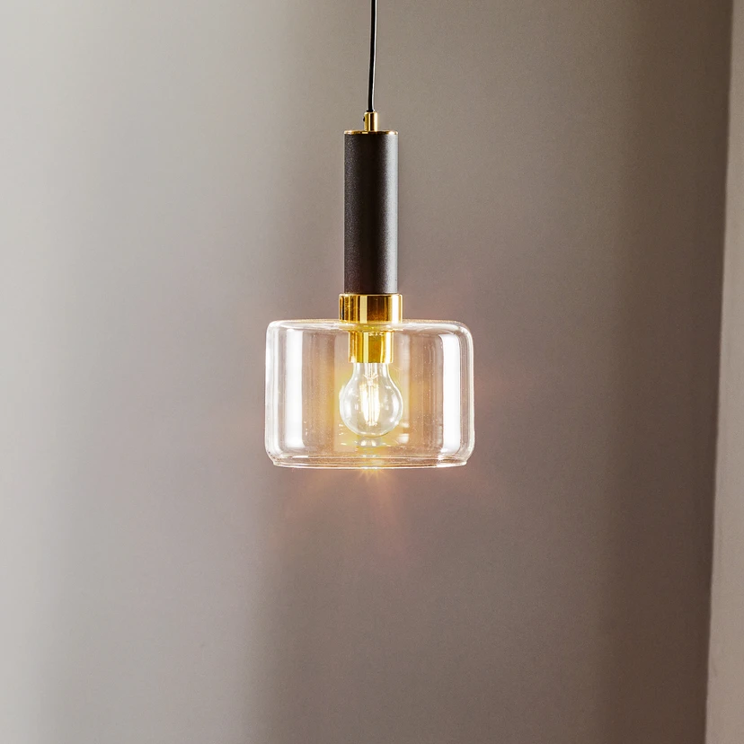 Lampă suspendată Viva, transparentă/negru/alamă, 1 bec