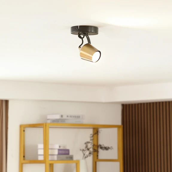 Spot de tavan din fier în combinație de culori auriu-negru Acest spot se integrează perfect în orice casă. Lumina oferă posibilitatea de a regla luminozitatea în funcție de starea dvs. de spirit cu ajutorul unui variator extern (nu este inclus). Are un stil remarcabil și se integrează minunat în orice zonă. Aduceți calitatea mărcii Lindby în casa dvs. cu această lampă. Lampa este fabricată din fier, în culorile negru și auriu. Este realizată pentru a găzdui surse de lumină cu soclu GU10. Lampa creează un aspect frumos și oferă spațiului dvs. de locuit un pic mai multă ambianță. Interiorul dvs. va fi pus în valoare cu această lampă, care poate fi amplasată cu ușurință în casa dvs. Folosiți lampa pentru a crea un concept de iluminat reușit în casa dvs.